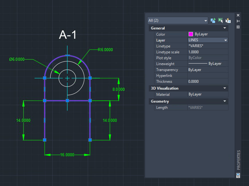 The Properties palette is an essential tool for editing and obtaining geometric information. Simply select one or more objects and view object property changes in real-time with the palette. You might be surprised to find something in the Properties palette that you were not aware of before.