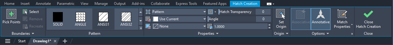 When applying or editing a hatch, you may want to assign properties like angle, scale, origin and so on.
