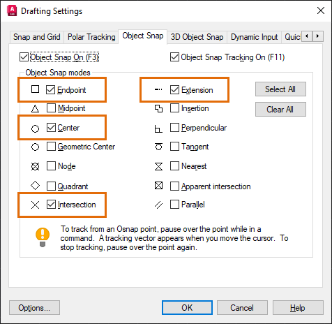 For example, the OSMODE system variable lets you set multiple running object snaps (osnaps). Here are the available options: