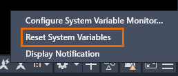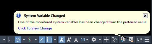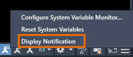 Notifications are enabled by default. If a system variable that you're monitoring has changed, an icon appears in the status bar (located in the lower right, below the drawing area).