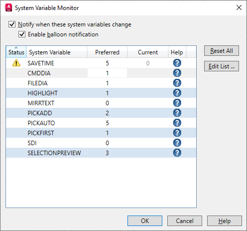 Rather than solve these issues case by case, what if you could keep an eye on certain system variables and be notified of any changes. Well you're in luck. In AutoCAD 2016, we introduced the System Variable Monitor, which was designed to provide this capability.