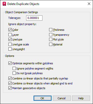 3. In the Delete Duplicate Objects dialog box, you can further refine the objects you want to remove.