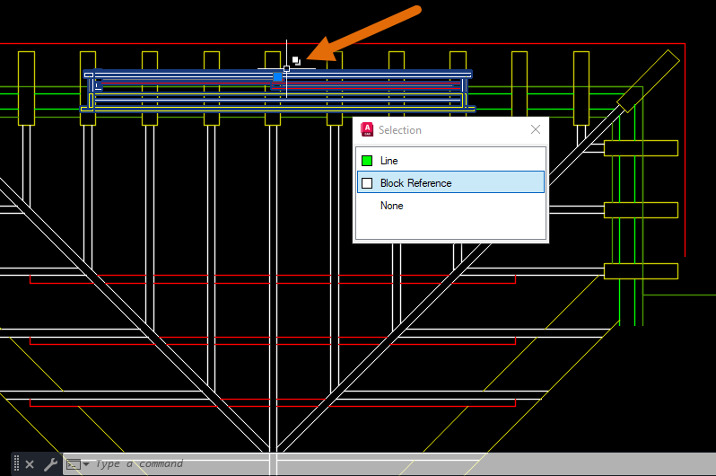 Now click the left mouse button to cycle through the stacked objects. When the object you want to select is highlighted, press Enter and start a command like you normally would.
