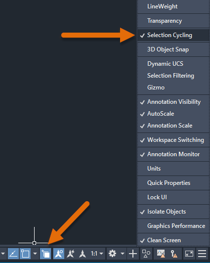 1. On the status bar, right-click on the selection cycling icon, and choose Selection Cycling Settings.