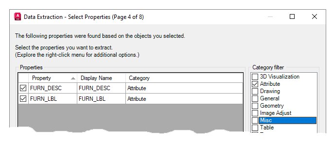 - Under Category Filter, clear all options except Attribute and then make sure the properties checked match the attribute values to extract.