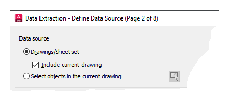 - Use the Drawings/Sheet Set and Include Current Drawing options, and click Next to continue.