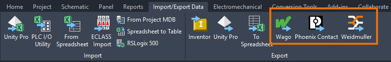 You can export terminal strips from the AutoCAD Electrical toolset and import them into Wago Smart Designer, Phoenix Contact CLIPX Engineer, or Weidmuller Configurator applications. These manufacturer tools allow you to design, manipulate, and validate terminal strips.