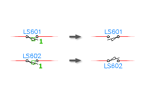 Existing attribute text is preserved on the flipped contact. If the maximum contact counts are carried by the parent symbol, the maximum counts are checked so that they are not exceeded by the flip.