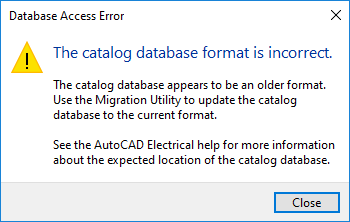 You can customize the catalog database by adding tables, adding records, and editing records. But, some changes can stop the program from using the catalog database. When that happens you see this alert.