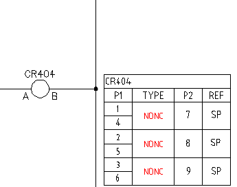 Displays the cross-reference format using an AutoCAD block (.dwg) file to represent the contact type. The _XREF_GRAPHICS table in the catalog lookup database defines the symbol mapping. The schematic library folders for the active project are searched for the mapped symbols for insertion.