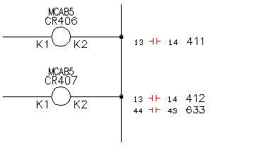 The following example displays cross-referencing next to the symbol in the graphic font format while the unused children (contacts) are displayed as separate references. The Fill Reference With value is “SP.”