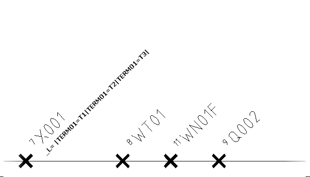 - Edit its MISC1 attribute value using the format “_L=|{attribute name}={attribute value} | {attribute name}={attribute value}”. For example, to assign different terminal numbers to the multi-pole insertion of three motor terminals, enter “_L=|TERM01=T1|TERM01=T2|TERM01=T3|”.