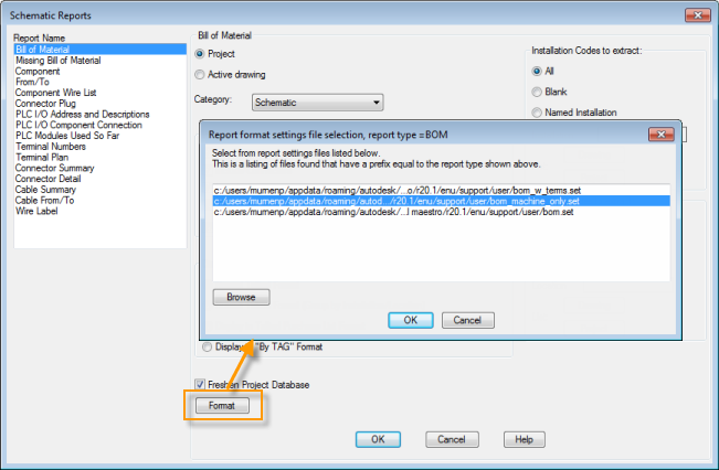 A format (.set) file preformats reports. A format file is specific to a report type, such as Bill of Materials or Component report. A format file defines the following: