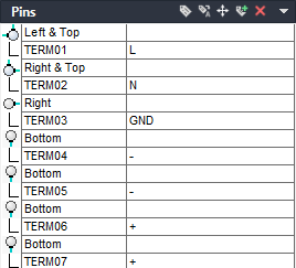 This terminal style inserts both the graphic to represent the screw and the wire connection points.