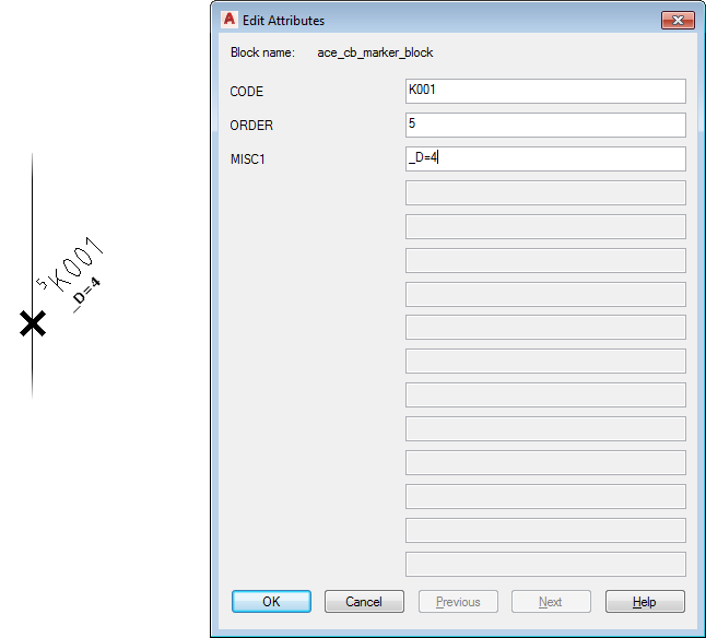 For example, if the template has a vertical 3-phase bus and the disconnection means that marker block is located over the right-hand wire, give its MISC1 attribute a value of "_D=4". It causes the child poles of the multi-pole insert to move to the left to pick up the remaining two bus wires.