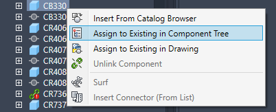 Note: You can also select an electrical component and assign it to an Inventor part. If you hover over any component that cannot be linked, you would see a 'stop' icon indicating that you cannot assign to that component in the tree.