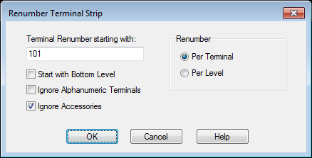 6. If any multi-level terminals are part of the selection, select whether to renumber by: