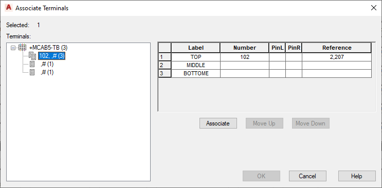 • Terminal Strip tab: Modify the terminal block properties, spare terminals, accessories, multi-level terminals, and destination locations.