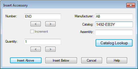 • Catalog Code Assignment tab: In addition to what can be done in the Terminal Strip tab, you can assign, delete, copy, or paste catalog part numbers to terminal blocks.