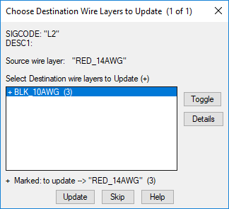 Lists the destination wires to be updated to match the wire type of source wire layer.