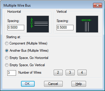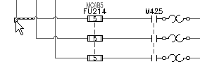 You can insert vertical or horizontal 3-phase wiring. Three-phase wiring automatically breaks and reconnects to any underlying components that it finds in its path. If it crosses any existing wiring, wire-crossing gaps are inserted.