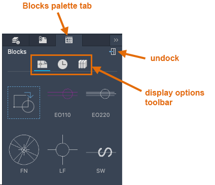 - Select the display option for block libraries.