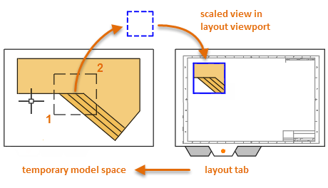 After you create one or more scaled layout viewports on a layout tab, follow these steps to use the trans-spatial method of annotating your drawing: