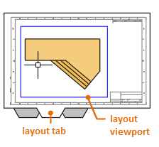 When you're working on a layout tab, you can switch between paper space and model space without returning to the Model tab. Here's how. As shown in the illustration, you move your cursor and double-click either inside a layout viewport to access model space or you double-click outside the layout viewport to return to paper space. When you're in model space, the border of the layout viewport becomes thicker.