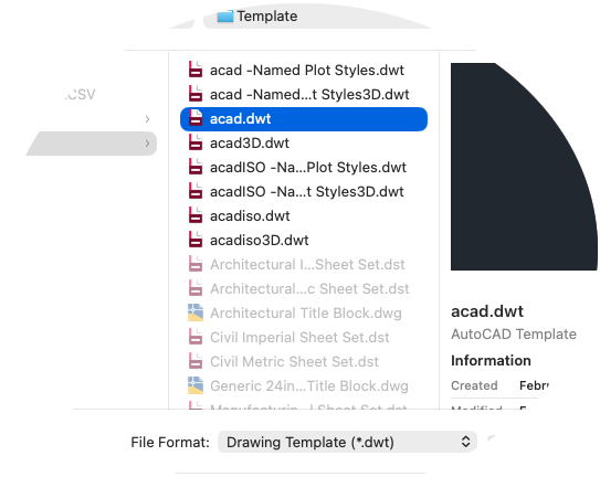 If you work independently, you can develop your drawing template files to suit your working preferences, adding settings for additional features as you become familiar with them. To modify an existing drawing template file, click Open, specify Drawing Template (*.dwt) in the dialog box, and choose the template file.