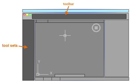 AutoCAD includes a tool set to the left of the drawing area. You can access nearly all the commands presented in this guide from the Drafting tab. In addition, the toolbar above the drawing area includes familiar commands such as New, Open, Save, Print, Undo, and so on.