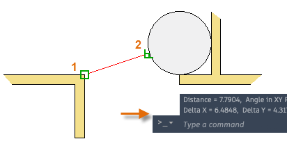 Dynamic input | Displays distances and angles near the cursor and accepts input as you use Tab between fields. |