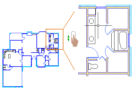Pan and zoom to different views in a drawing.