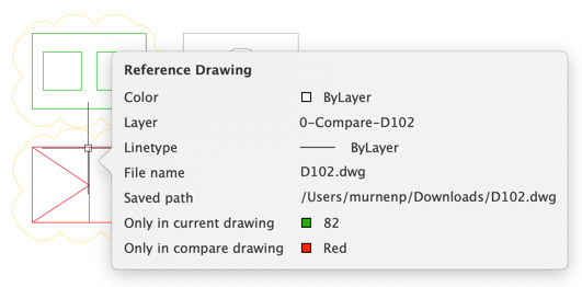During a drawing compare, the rollover tooltip includes the following additional information: