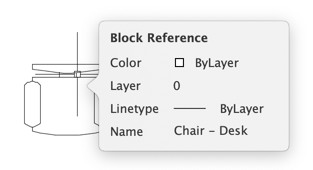 Rollover tooltips display current values of certain properties when the cursor hovers over an object in the drawing area.