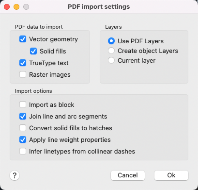 - Creates AutoCAD layers from the layers stored in the PDF file, and applies them to the imported objects. The layer names have a PDF prefix. If no layers are present in the PDF file, object layers are created instead.