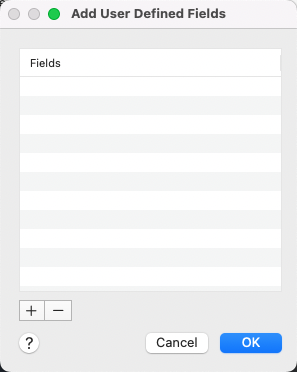 User-defined fields are created and edited using the User Defined Fields dialog box, which is displayed when you choose the Add/Edit button in the Plot Stamp dialog box.