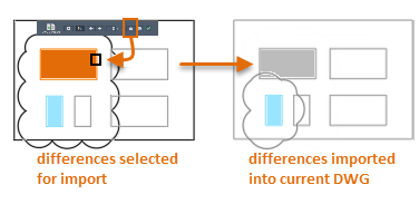 From the DWG Compare visor, you can import differences from the compared drawing into the current drawing. Only those objects that are different in the