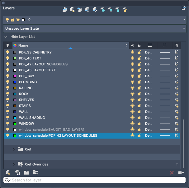When you attach a drawing file, its layers and layer properties are added to the current drawing. Each layer name is prefixed with the xref's name, which can be different than the referenced drawing's file name.