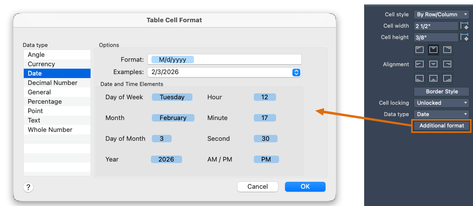 - If available, click Additional Format to display the Table Cell Format dialog box with more formatting options.