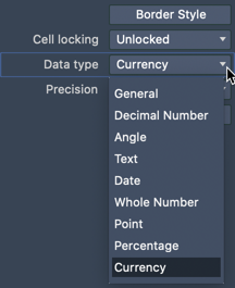 Table cells can use data formats such as currency, numbers, dates, and more.