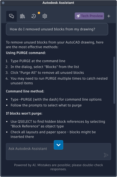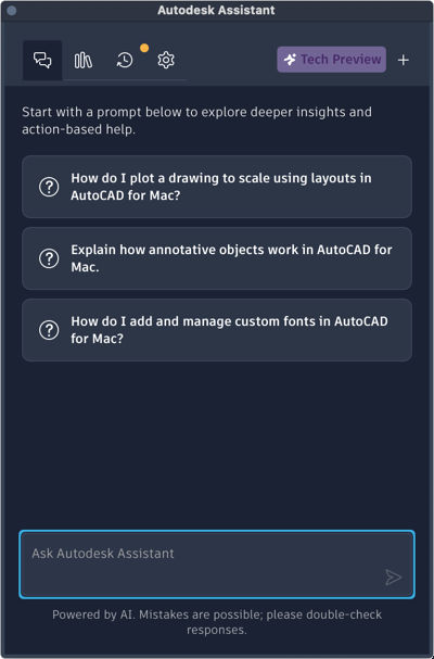 Displays the Autodesk Assistant palette, which provides AI-guided help.