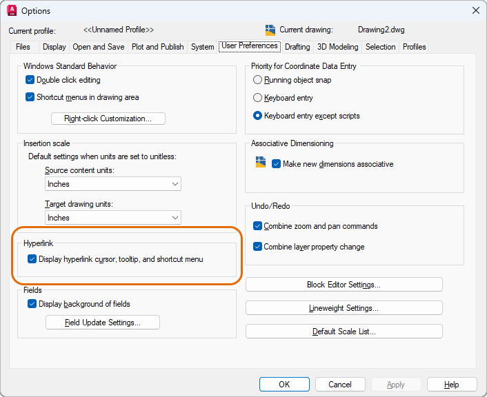 Enable the display of hyperlink information from the User Preferences tab of the Options dialog.