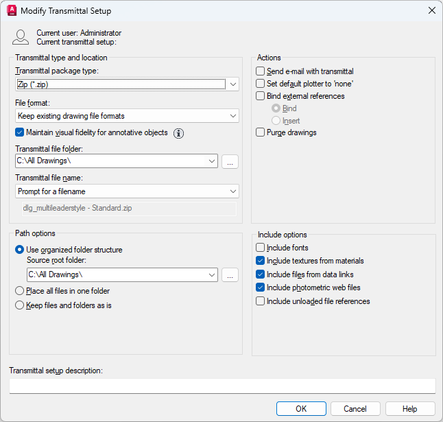 ETRANSMIT (Command) Find: Transmittal Setups > Modify