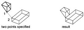 When you select only one source point and destination point pair, the selected objects move in 2D or 3D from the source point (1) to the destination point (2).