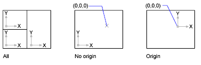 Displays the icon at the origin (0,0,0) of the current UCS. If the origin is out of view, it is displayed at the lower-left corner of the viewport.