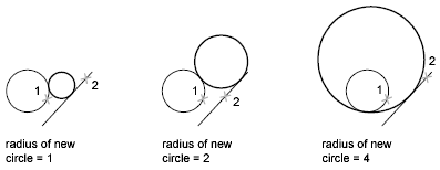 You can create circles in several ways. The default method is to specify the center and the radius. Three other ways to draw a circle are shown in the illustration.