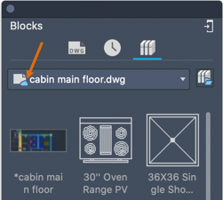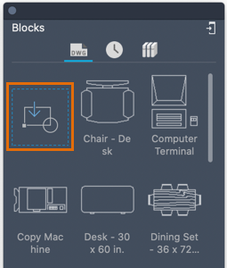 - Click the block icon from the current drawing view to browse to any DWG file to insert