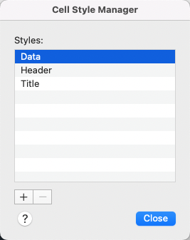 Lists all cell styles contained within the current table style. The cell styles Title, Header, and Data are always contained within any table style.