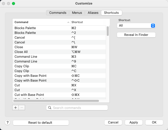 - Reset all keyboard shorts to the product's default state.