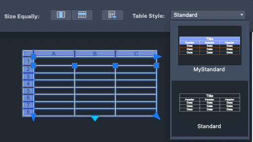On the Properties Inspector, select a table style from the Table Style drop-down in the Table section.